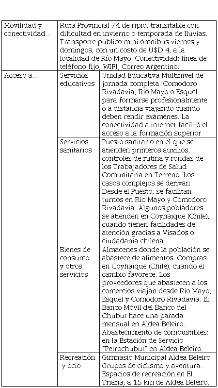 La producción de dispositivos y estrategias en función de los procesos que facilitan el desarrollo del territorio local están ligados a las nociones tanto locales como importadas y externas de y sobre la localidad. En ese sentido, nos interesó pensar en conjunto en cada entrevista, qué implica vivir en la Aldea, que se experimenta desde las valoraciones externas y cómo se producen las concepciones de lejanía, cercanía.