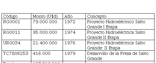 El préstamo total del BID alcanzó para la obra los U$d 195.816.000, el BID, con el cual se lograron entre 1972 y 1979 los siguientes empréstitos: