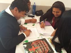 Se visualizan a continuación imágenes de estudiantes de ESFM U-A. Sacaba, en pos del la técnica de la asociación ideas para el desarrollo lingüístico (lectura y escritura). Producción narrativa (cuento, historia y otros).