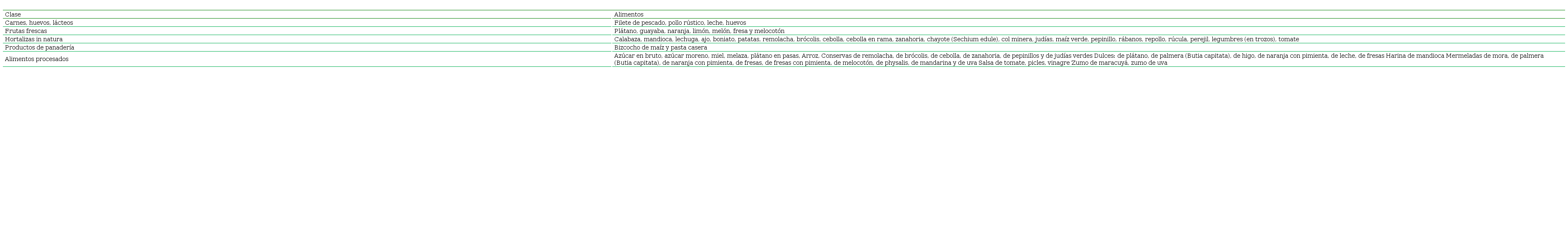 Los autores Ribeiro et al. (2013) y Nunes et al. (2018), consolidan cuatro clases de productos: hortalizas, frutas, productos de panadería y carnes, huevos y lácteos. En nuestro estudio, consolidamos una clase a más: alimentos procesados. Esta clase de procesados abarca las conservas, las mermeladas, las jaleas, pulpa de frutas, salsa de tomate; o sea, productos agrícolas transformados, con valor añadido (Tablas 1 y 2).