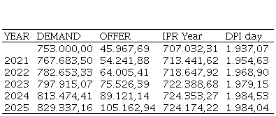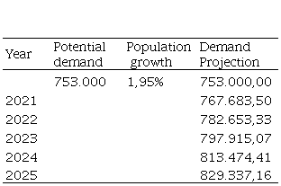 To project demand over the next 5 years, the population growth rate of 1.95% is used as a reference index. (INEC, 2020) See Table 6