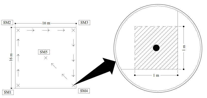 Para el muestreo del banco de semillas se aplicó el método propuesto por Kalesnik et al. (2013) que consistió en colectar por cada UM cinco muestras de suelo. En las esquinas de la unidad de muestreo se procuró un distanciamiento aproximado de 1 m siguiendo ambos lados del cuadrado a partir de su vértice de manera que permita simular una subunidad de muestreo (SM) de 1 m2 en cuyo centro se realizó la extracción. Primero se realizó la recolección de muestras en las esquinas siguiendo un sentido horario y luego en el centro de la UM (Figura 2.)nPara la recolección de cada muestra de suelo, se retiró la hojarasca, ramas, ramillas u otro material vegetal caído en el suelo sin alterar las especies vegetales presentes cerca de la zona a muestrear y, se insertó un cilindro de metal de 10 cm de diámetro y 7 cm de altura