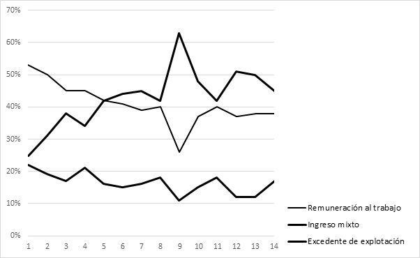 Palabras clave: Distribución primaria del ingreso, Salarios, Categorías ocupacionales.
