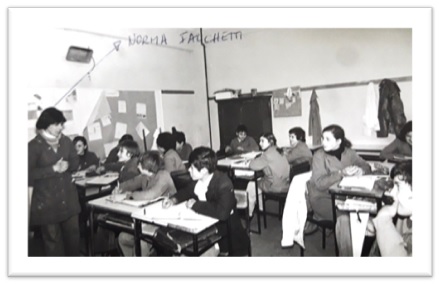 Era difícil. Yo tenía 6.° y 7.°, con mi compañera, teníamos un salón multiuso que tuvimos que transformarla en aula porque eran muchísimos. Las aulas estaban pensadas para no más de 25 chicos y de repente teníamos 40 y había que trabajar la integración. Además, pobrecitos, eran chicos que no sabían ni por qué estaban ahí. (…) Con los más chiquitos fue más fácil porque se adaptan más rápido. Los más grandes estaban en la actitud de ¿y por qué tenemos que estar acá? (Entrevista a Norma Falchetti, exmaestra de la escuela. Buenos Aires, mayo de 2018).