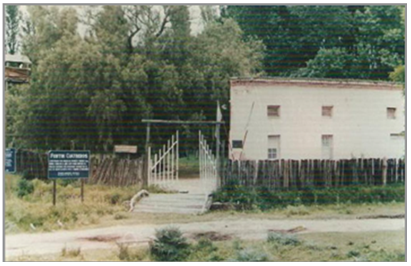 En el año 1944, la edificación considerada Fortín Cuatreros, con el entorno en que se halla, fue declarada Monumento Histórico Nacional por Decreto Provincial 14.119 de la Comisión Nacional de Museos y de Monumentos y Lugares Históricos (Biblioteca Popular José Hernández, s/f; Pupio y Perrière, 2013). Cuando en 1974 se decidió la reconstrucción del inmueble, se encontraba muy deteriorado. Las tareas de reconstrucción fueron desarrolladas por el Comando V Cuerpo de Ejército de Bahía Blanca, con asesoramiento del Museo Histórico y de Ciencias Naturales de la Municipalidad de Bahía Blanca. Los materiales fueron aportados por empresas como Sansinena, ya en ese momento denominada CAP por estar gestionada por la Corporación Argentina de Productores, y por los vecinos residentes. Se reconstruyeron la empalizada de palo a pique en torno a la construcción, el mangrullo y el foso de un metro de profundidad por tres metros de ancho con puente levadizo, utilizando procedimientos típicos de la época como ataduras con cuero crudo y el techo del mangrullo con cuero fresco (La Nueva Provincia, 5/5/1974) (Figura 3).