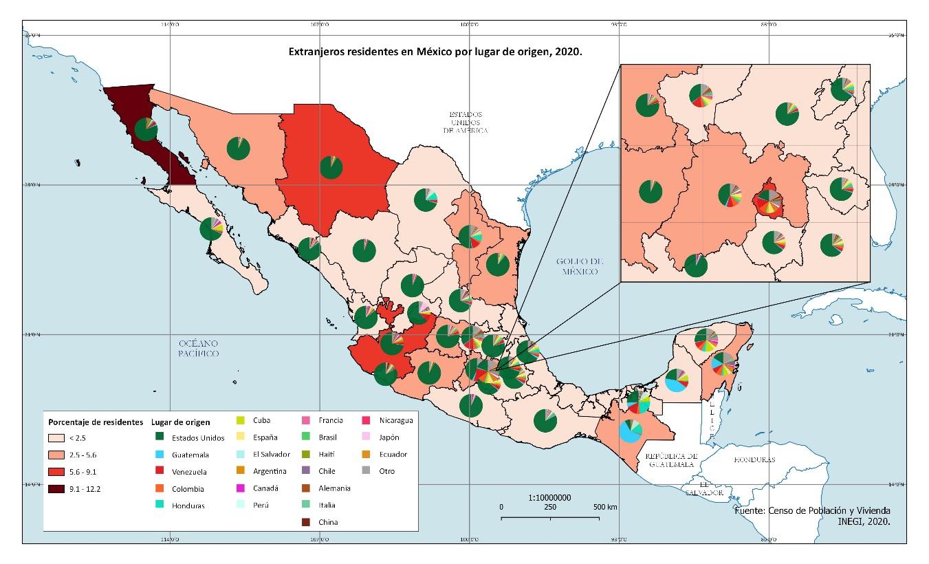 Sobre la distribución de esta población en el país, destacan los estados fronterizos, donde se encuentra una importante proporción de extranjeros (ver Figura 1), aunque también sobresalen otros estados como Jalisco y la Ciudad de México.