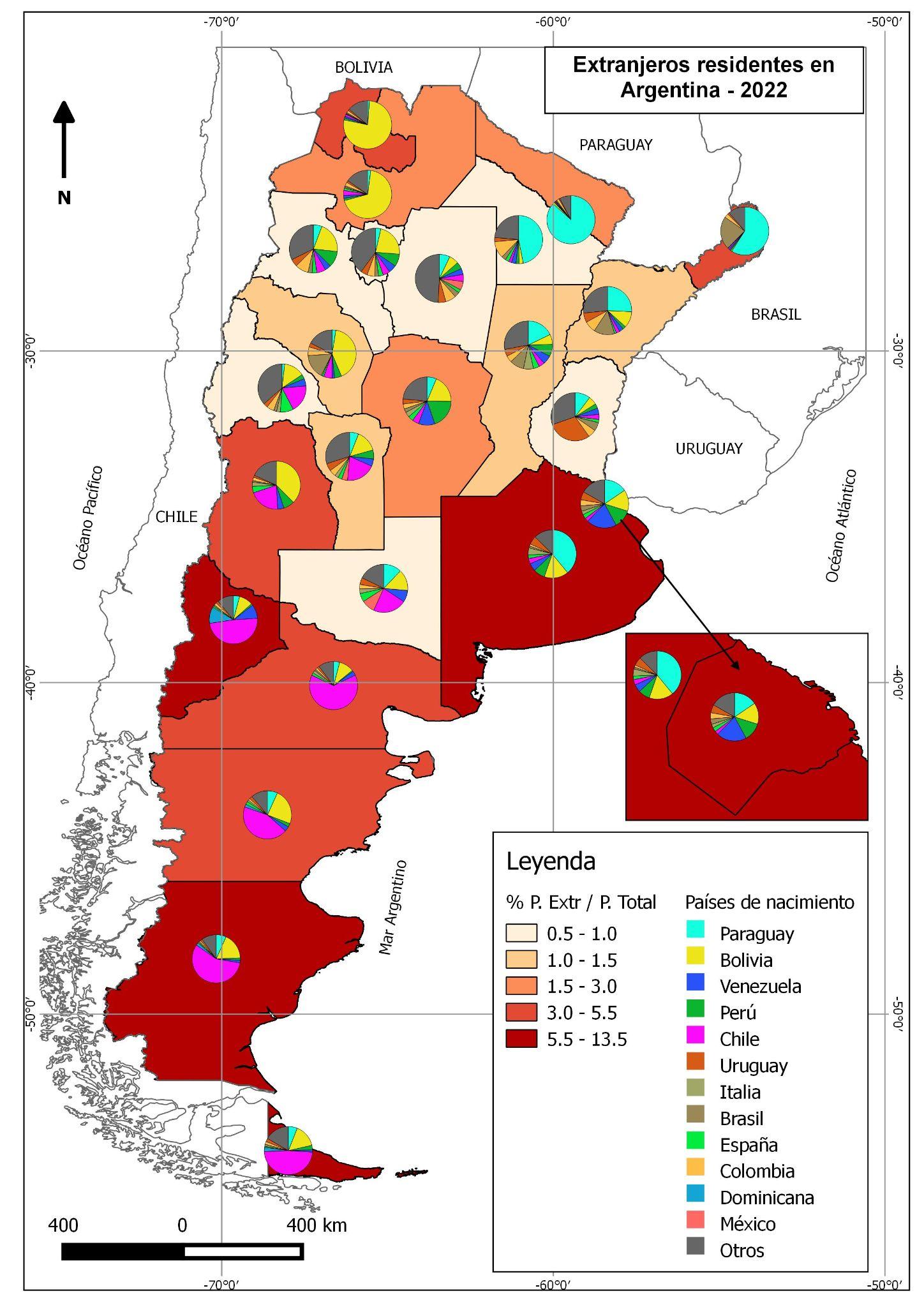 En un sentido general, es posible indicar que los abordajes a escalas nacionales además de revisar los disímiles valores absolutos y relativos de la población extranjera en cada país (de 1.2 millones, equivalentes a menos del 1% en el caso de México y de 1.9 millones representativos del 4% para Argentina) requieren de una lectura histórica que permita entender al conjunto de población extranjera en su devenir. En el caso argentino resulta indispensable comprenderlas por el peso tradicional que las migraciones han tenido en su crecimiento demográfico; en el caso mexicano es necesario dar cuenta del proceso de pérdida de población previa para comprender el peso actual de población norteamericana en el país. Además, a niveles subnacionales el ejercicio comparativo permite delimitar ciertos patrones de distribución de las migraciones al interior de los estados nacionales donde las grandes ciudades, en particular las metrópolis de México y Buenos Aires, y los espacios fronterizos ocupan un especial protagonismo. Esta última resulta en una similitud destacada a la cual se suma el impacto de la diáspora reciente desde Venezuela que ha encontrado en ambos países un destino de peso, constituyéndose en la tercera comunidad extranjera registrada en ambos casos a escalas nacionales; esta migración además se destaca por sus altos niveles de instrucción educativa, proveniente principalmente de sectores de clases medias.