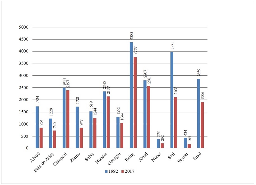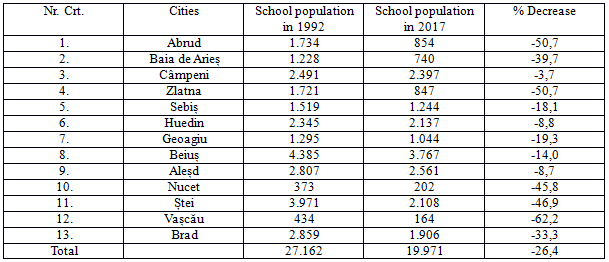 The school population in the urban environment of the Apuseni Mountains was in a continuous decrease from 1992 to 2017.