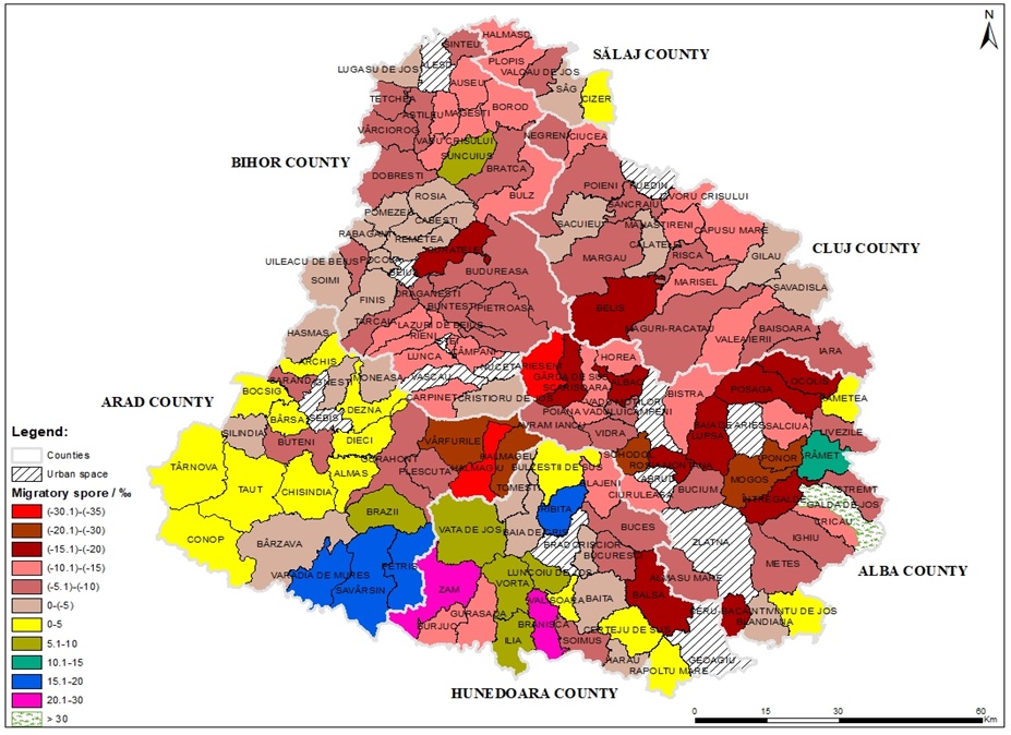 In parallel with the ethnic factor, migratory dynamics is another cause that led to a decrease in the school herd in the time interval 1992-2017. Practically, migration dynamics has brought significant consequences to the decrease in the number of pupils. Of the 153 administrative units more than 100 had in 2017 the negative migratory balance rate. The departure of the young population is a phenomenon that has been exerted for 25 years. In these years, due to the departure of young people, other demographics of risk (demographic ageing, depopulation) have emerged in close connection to the dynamic component of the Apuseni Mountains.