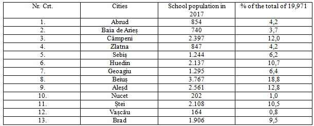Keywords: School population, Carpathian Mountain Space, Apuseni Mountains.