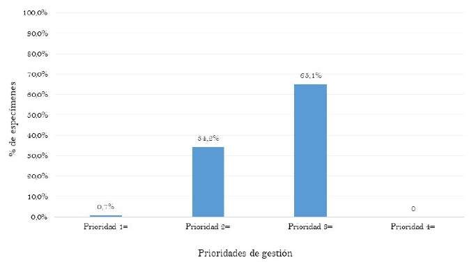 Las prioridades de gestión de la colección de coleópteros acuáticos mostraron mayor valor en el nivel dos