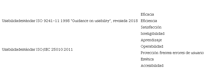 Estándar ISO 9241-11:1998 “Guidance on usability”, revisada 2018.