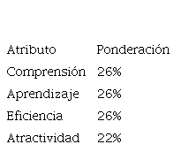 Basados en los atributos y características ya mencionados, se conformó una matriz ponderada, descrita en la tabla 4.