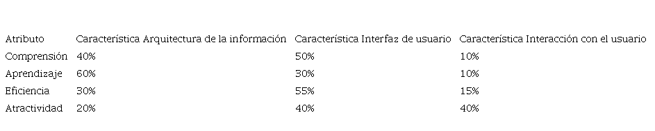 De acuerdo con los atributos planteados se puede afirmar que la comprensión, el aprendizaje y la eficiencia, son esenciales para que el usuario pueda cumplir el proceso académico y el atributo de atractividad, aunque es muy importante contar con un sitio web que seduzca al usuario; puede ser utilizado normalmente, y por ello se le asignó un menor puntaje.