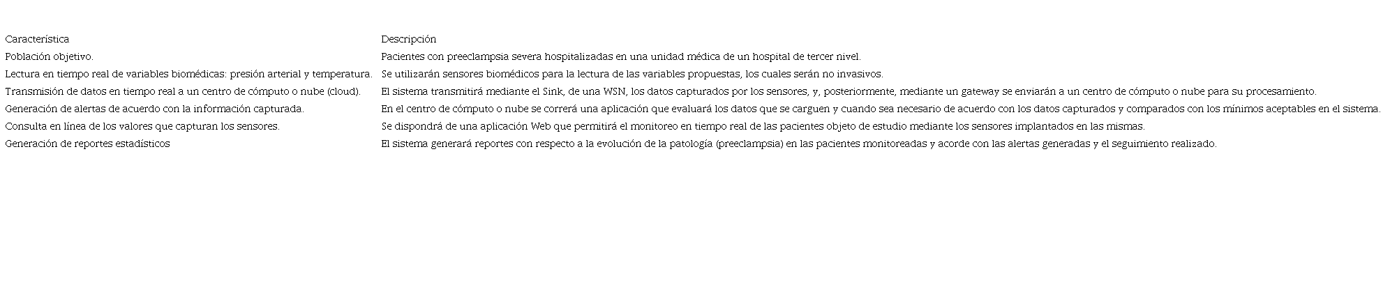 Teniendo en cuenta los aspectos antes mencionados relacionados con el diseño y funcionamiento del sistema, en la tabla 4 se enumeran las características que debe poseer el mismo para su implementación.