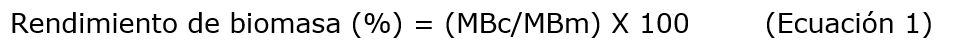 Donde MBc corresponde a la masa del biocarbón obtenido y MBm corresponde a la masa seca de las biomasas utilizadas para la producción del biocarbón.