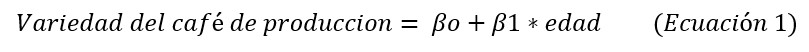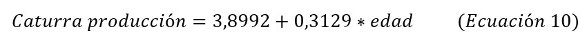 Para la variedad caturra, se aplicó un modelo lineal que permite estimar la producción individual del cafeto a partir de su edad. La ecuación 10, denominada modelo de producción para la variedad caturra, expresa esta relación:
