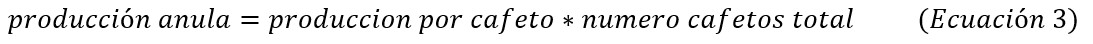 Finalmente, la ecuación 3, denominada modelo de producción anual, permite obtener la producción total del lote, multiplicando la producción estimada por cafeto por el número total de cafetos: