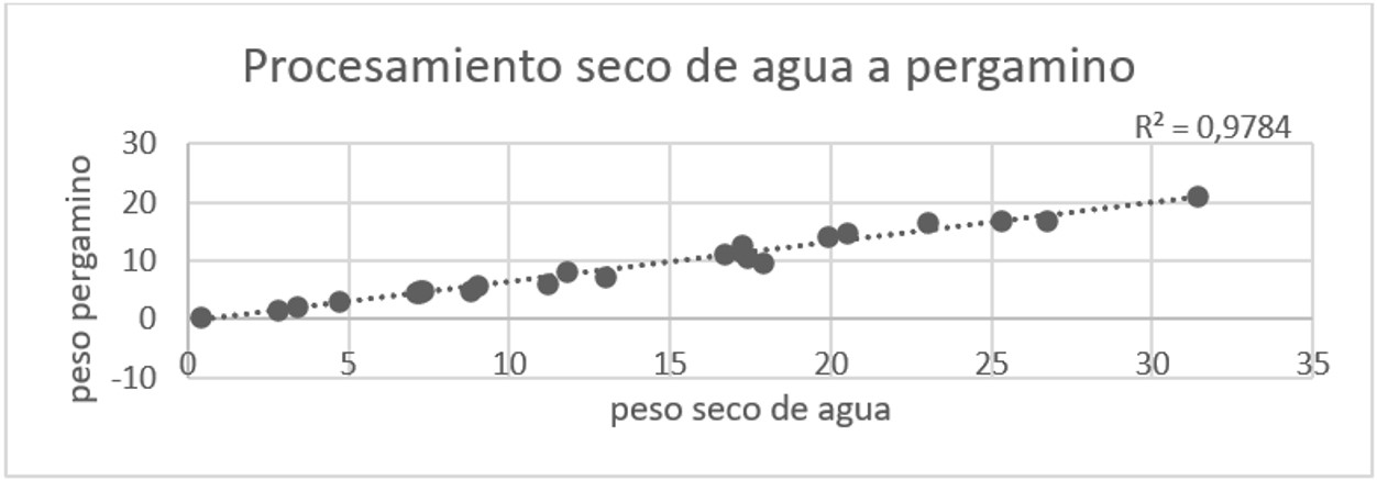 Para determinar las mermas del café en las distintas etapas del beneficio, se recolectaron muestras y se registró su peso inicial y final. Con estos datos, se calcularon los coeficientes de correlación y los factores de merma. Los resultados obtenidos se presentan en el Anexo 2.