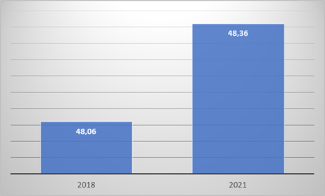 Este progreso también plantea nuevos desafíos administrativos, especialmente en lo relacionado con la ampliación y reestructuración de la planta de personal, que aún opera con la misma capacidad del año 2018. La capacidad institucional y financiera ha contribuido a generar estabilidad en la gestión contable de la entidad territorial. Sin embargo, los retos actuales deben enfocarse en mejorar los procesos internos que se traduzcan en bienes y servicios efectivos para la comunidad. Al comparar los indicadores de calidad de vida, no se evidencia una relación directa que refleje un impacto positivo. Por ejemplo, el índice cualitativo de vivienda fue de 48,06 en 2018 y apenas aumentó a 48,36 en 2021 (ver Figura 2), lo que indica que cerca del 50 % de los hogares aún requieren mejoras en sus viviendas para alcanzar estándares mínimos de habitabilidad.
