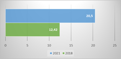 Adicional a los índices cualitativos, también se pueden encontrar los índices cuantitativos de vivienda, lo cual relaciona la cantidad de viviendas que la sociedad requiere construir en comparación con los hogares que necesitan un alojamiento; si se observa la figura 3, del año 2018 al año 2021, esta situación pasó de 12,42 puntos a 20,5, desmejorando notablemente en un 65,06%.