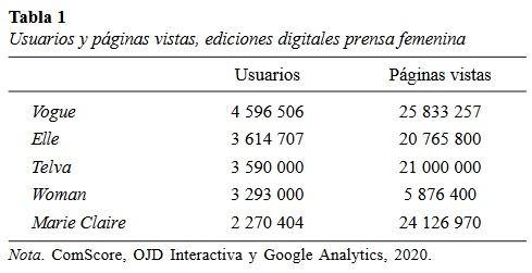 Esta alta participación femenina en redes no ha pasado desapercibida para los medios de comunicación y, más concretamente, para las publicaciones dirigidas a la mujer. Todas ellas están presentes y utilizan estos espacios sociales para distribuir su contenido, crear comunidad y acercarse al público más joven (Cristófol et al., 2017).