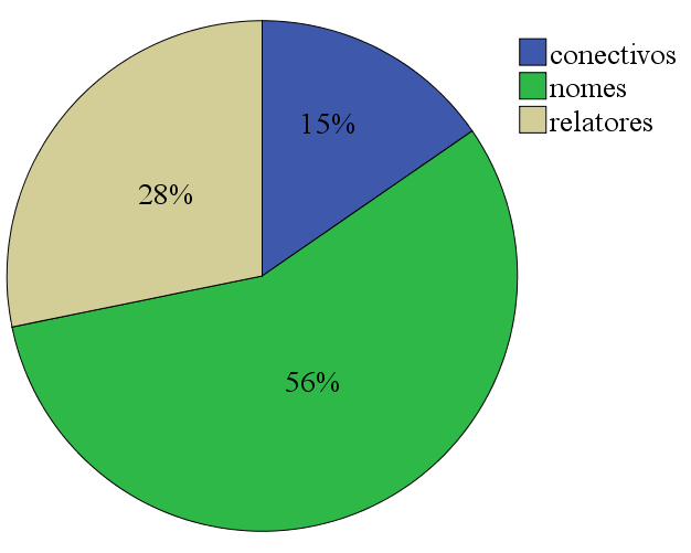Tais resultados vão de encontro a alguns identificados nas pesquisas de Santos et al. (2002) e Santos (1991). Nelas, substantivos, adjetivos, verbos e advérbios, ou seja, palavras pertencentes ao grupo dos nomes, foram as classes gramaticais cujas lacunas foram as mais difíceis de serem completadas. Por outro lado, palavras funcionais, ligadas à função coesiva do discurso, como o grupo dos conectivos, teriam menor carga semântica e seriam menos difíceis de serem identificadas. A explicação dada por Abraham e Chapelle (apud SANTOS et al., 2002) é que as palavras de classes gramaticais como as do grupo dos nomes são palavras de conteúdo e com alta carga semântica em relação à função no discurso. Assim,