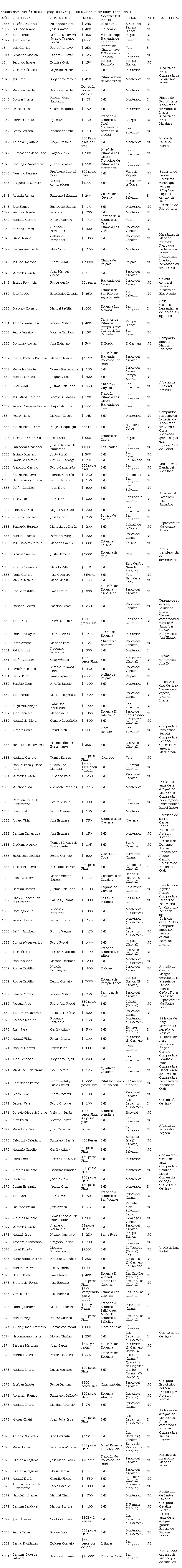 Dado que se trata de una comparación diacrónica, introducimos, en la medida que las fuentes nos lo permiten, consideraciones sobre la extensión de la propiedad, que no siempre se encuentra mencionado.