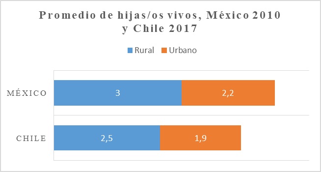 De la misma manera, la variable promedio de número de hijos/as, permite vislumbrar diferencias en el acceso a métodos de control de natalidad como un derecho reproductivo, profundizando la relación con la carga laboral que tienen las mujeres en el ejercicio del cuidado, y los patrones patriarcales asociados a la diferencia sexual en sectores más tradicionales. Debido a ello, se recolectó la información de las mujeres fecundas tanto en México como en Chile para poder establecer su relación con la población total de mujeres.