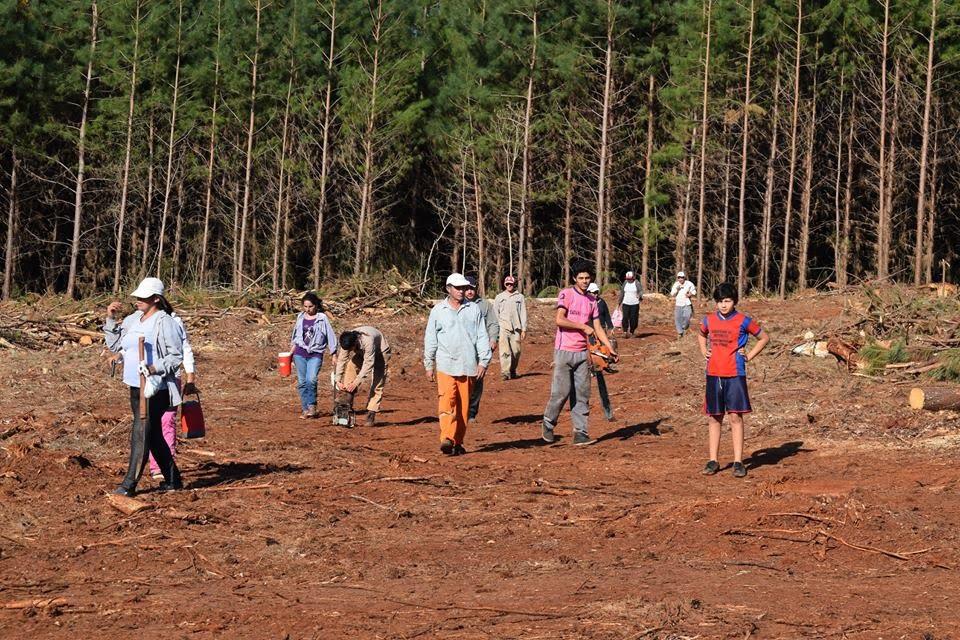 En Piray 18, la configuración territorial (proximidad de las viviendas) que facilita la circulación fluida de personas (reuniones, encuentros, intercambios) e información; la trayectoria de participación política de algunos de los/las vecinos/as de la colonia; las asociaciones promovidas por las políticas públicas para el sector de la agricultura familiar, etc. contribuyeron a la formación de una organización conocida como Productores Independientes de Piray (PIP) en el 2006. Estuvo compuesta inicialmente por unas 60 familias y actualmente llega a congregar alrededor de 120. En principio las acciones de la PIP se orientaron a obtener recursos para proyectos productivos, buscando diversificar las fuentes de ingreso. Algunas alianzas con técnicos/as de la Secretaría de Agricultura Familiar y Desarrollo Rural (SAF)[14] favorecieron a los acompañamientos en esa dirección. Sin embargo, la tenencia precaria de la tierra y el pequeño tamaño de las EAP se presentaban como limitaciones a la hora de conseguir determinados financiamientos. En ese contexto, quienes participaban de PIP comenzaron a problematizar su situación respecto a la tierra, a demandar al Estado provincial y a interpelar a la empresa ARAUCO. El reclamo por tierra surgió en los debates y las conversaciones entre vecinos/as frente a la situación de desempleo y la auto-percepción de vulnerabilidad. En 2012, luego de años de demandas sostenidas, PIP consiguió que los diputados provinciales sancionaran la ley de compra o expropiación de 600 ha de la tierra en posesión de ARAUCO. En 2017, PIP pudo acceder a la tierra que le correspondía por ley. Entonces, aquellos pinos que por muchos años “acorralaron” las casas se fueron corriendo. En paralelo, las mujeres de PIP formaron un proyecto de vivero, una huerta en la sede para alimentar a los visitantes de la organización, entre otras actividades. Actualmente PIP se encuentra inscripta en la Unión de Trabajadores por la Tierra (UTT), junto con otras organizaciones del Alto Paraná misionero y suele ser presentada como un caso ejemplar a nivel nacional.