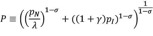 Para capturar esta dinámica en nuestro modelo, asumimos que el precio relativo afecta también el valor de , afectando adicionalmente por esta vía indirecta a las cantidades relativas (el “margen extensivo”). En particular, asumimos que: