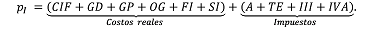 Todas estas variables se encuentran expresadas en dólares y por unidad de producto, mientras que los subíndices t denotan tasas. A continuación, explicamos el significado de cada una de ellas.