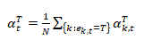 La variable de estado13 representa el comportamiento del agente en el sitio al t-ésimo tick. Dicho estado está definido por la estrategia elegida para tomar su posición, (en principio, técnica (T) o fundamentalista (F) con cantidades totales de agentes y ) y el volumen de acciones que decide negociar, ( compra, vende y no interviene); resultando $S_{k,t} \in \left\{T,F\right\}\times {\rm R}$.