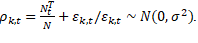 (13)y como en el caso de los técnicos, son variables aleatorias independientes e igualmente distribuidas con . Aquí, la componente aleatoria se justifica bajo el supuesto de que los agentes no tienen conocimiento exacto del precio fundamental y actúan colectivamente como transductores de esa señal, “descubriéndola” e incorporándola al precio de mercado.