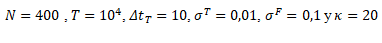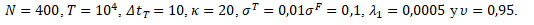 Se observa que variando en un intervalo de tiempo el nivel de impacto de la volatilidad del precio fundamental en la ecuación de incertidumbre de los agentes (41) se genera un periodo de alta volatilidad del mercado.