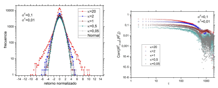 Por ejemplo, Tseng y Li (2011) se hacen la siguiente pregunta: ¿Es necesario que se tenga una distribución de colas pesadas a fin de que la función de autocorrelación no lineal tenga un decaimiento lento? Estos autores, a partir de un análisis estadístico, sugieren que las colas pesadas en la distribución de retornos podrían no ser responsables por el comportamiento de decaimiento lento de las funciones de autocorrelación no lineal.