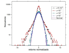 Pongamos el caso de la no-normalidad de los retornos. Mandelbrot (1960, 1963) fue uno de los primeros en observar una clara desviación de la conducta “normal” para estas fluctuaciones. Así Mandelbrot (1960, 1963), Fama (1995) y Mantegna y Stanley (1995), entre otros, han afirmado que las distribuciones de retorno pueden ser aproximadas por una ley simétrica estable de Lévy. Otros estudios también han analizado las series de retorno. Por ejemplo Cont y otros (1997) han propuesto el uso de distribuciones exponenciales truncadas. Eberlein y otros (1998) ensayan Gaussianas inversas con decaimientos asintóticos por leyes de potencias multiplicadas por una exponencial y Longin (1996) estudió las distribuciones de mínima y máxima con una distribución de Fréchet. Laherrere y Sornette (1999) sugieren exponenciales extendidas. Más recientemente, Queiros y otros (2005) proponen distribuciones q-gaussianas. Por último Podobnik y otros (2009) analizan aproximadamente 8000 acciones que componen el Nasdaq y el New York Stock Exchange (registradas anualmente). En este trabajo la distribución de densidad de probabilidad o el retorno acumulado son aproximadas por distribuciones de Laplace (exponenciales dobles), generalmente en la región central.