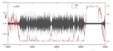 Kirman (1991) propone una formalización estocástica simple para la interacción de los agentes del mercado, inspirada en experimentos con colonias de hormigas, que lleva a tales patrones macroscópicos emergentes con fluctuaciones excesivas cuasi periódicas. Éste introduce un modelo estocástico de elección binaria (en nuestro caso, las dos estrategias posibles o estados) que resulta en un proceso de Markov15 sobre el número total de agentes que eligen un estado dado.