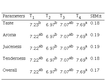 For sensory evaluation, cooked breast meat samples from each treatment were served to a panel of 10 trained evaluators who were familiar with poultry meat quality attributes. Panelists assessed flavor, tenderness, juiciness, and overall acceptability using a 9-point hedonic scale.