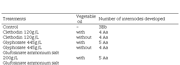 Regarding the number of internodes developed at 90 DAA of herbicides, results are shown in Table 3.