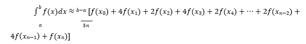 Si 𝑓es continua en [a, b], y 𝑛 es un numero par. Y si 𝑎 = 𝑥0, 𝑥1, … , 𝑥𝑛 = 𝑏 forman una partición regular de [a, b], entonces