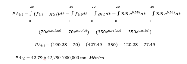 aumento del consumo de petróleo estaría dada por 𝑅𝑡 = 20𝑒0.08𝑡 millones de barriles por año. Con estos modelos determinar la cantidad de petróleo que se habría ahorrado de 1995 a 2000 de haberse implantado la ley.