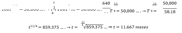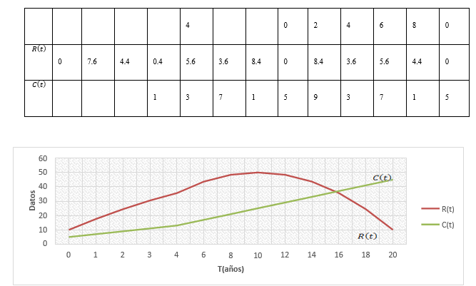 Igualando ambas funciones para determinar el tiempo de rentabilidad: