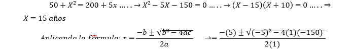 b. Para obtener la utilidad, remplazar el valor: x=15 años
