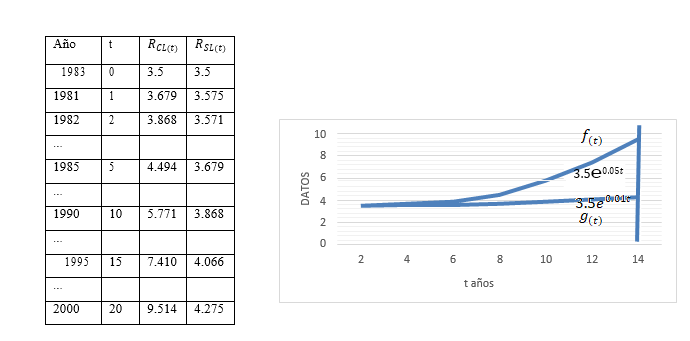 Tasa de producción de carbón si no hubiera crisis energética 𝑔(𝑡) = 3.5 𝑒0.01𝑡