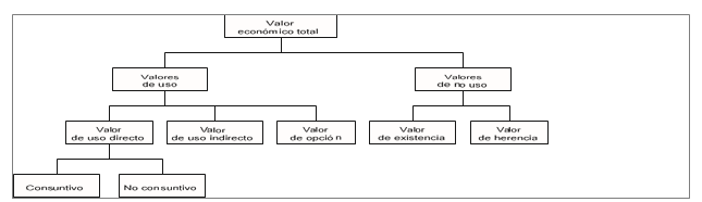 Una vez decidido el conjunto de derechos de los distintos colectivos sociales con respecto al disfrute de la naturaleza, resulta operativo tratar de condensar la información obtenida en una serie de categorías que ayuden al analista a aproximarse a los distintos componentes del valor de aquello que está estudiando, hasta alcanzar su denominado Valor Económico Total. Como se ha ido exponiendo a lo largo de este capítulo, el medio ambiente puede tener distintos tipos de valor, de acuerdo con el sentido literal del término, para diferentes personas y colectivos. La