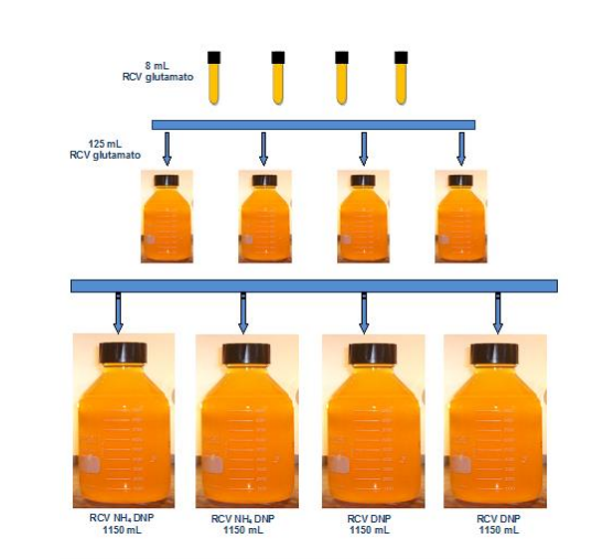 Se empleó 2,4- dinitrofenol (DNP) de grado analítico provisto por Fluka (Riedel de Haën). Todos los reactivos químicos fueron de grado analítico provistos por Sigma Chemical Company (St. Louis, USA), Merck (Darmstadt, Alemania) y Panreac (Barcelona, España). La solución de 2,4-DNP 200 mM, se preparó asépticamente disolviendo la cantidad necesaria en 50 mL de dimetilsulfóxido (DMSO).