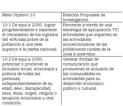 El Programa de Naciones Unidas para el Desarrollo (PNUD), a propósito de este Objetivo, indica que en Colombia aparece entre los países más desiguales de la región, por encima de Brasil, Uruguay, Perú y México. Por esto considera, que es prioritario intervenir en las acciones que afecten las dimensiones de la calidad de vida. De su postura, se extraen las siguientes ideas asociadas a entender la forma como los procesos de apropiación TIC, guardan una estrecha relación con la reducción de las desigualdades (p. 229):