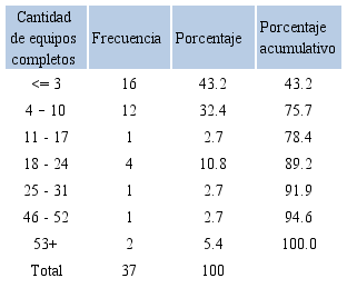 En la Tabla 4 se muestran los datos del tamaño de las flotas agrupadas para el año 2016. Se puede destacar que 43% de las empresas evaluadas tienen solamente hasta 3 equipos completos, lo que constituye un cabezal y una unidad de arrastre (cisterna); 76% de las empresas llegan hasta 10 equipos completos. Esto es una característica muy típica del sector de transporte de carga terrestre panameño al estar compuesta mayormente por empresas pequeñas.
