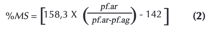 Durante el desarrollo del cultivo se evaluó mensualmente la cobertura de malezas presentes en los tratamientos respectivos en cada fecha. Para lo cual, se lanzó un marco de 25 cm x 25 cm tres veces por parcela aleatoriamente. Se registró el porcentaje de área ocupada por las malezas en cada lanzamiento y se clasificaron (Hoja ancha, gramíneas y otras). Además, se evaluaron variables como, altura de malezas, peso fresco total de malezas por cuadro, peso fresco separado (Hoja ancha, gramíneas y otras). Para determinar el peso seco, se tomó una muestra de 300 gr del peso fresco total y se secaron en estufa 80°C durante 48 horas. El porcentaje de materia seca (% MS) de las malezas se obtuvo aplicando la ecuación 1.